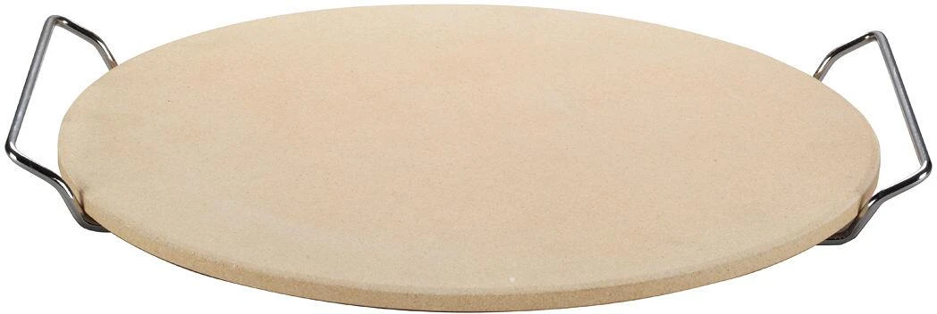 Lieferumfang: Pizzastein mit verchromten Haltern